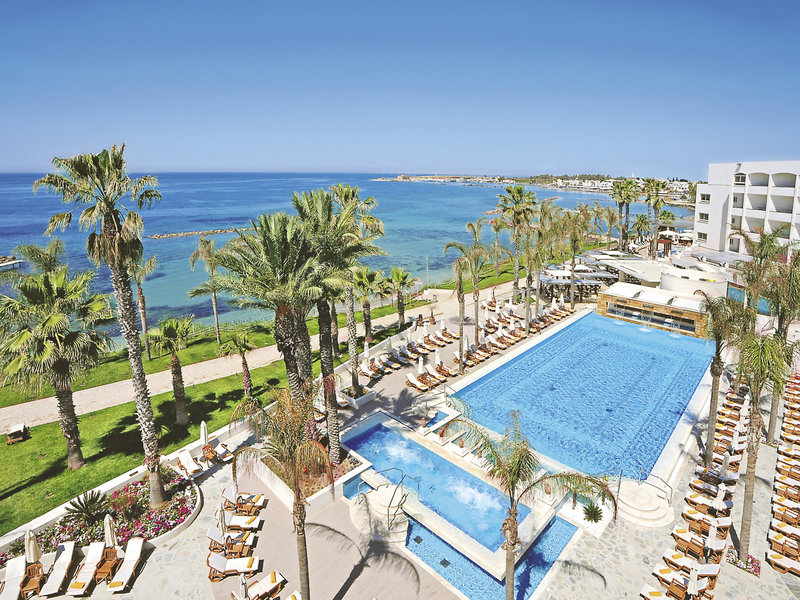 Poloha a okolie Ocenený hotel sa nachádza priamo na promenáde, ktorá vedie do prístavu Paphos, nad plážou. Vďaka výhodnej polohe môžete očakávať úchvatný výhľad na Stredozemné more. Rôznorodá kulinárska ponuka je to, čo odlišuje tento dom. Centrum Paphosu je vzdialené približne 800 m, letisko Paphos je vzdialené približne 15 km a letisko Larnaca približne 135 km.