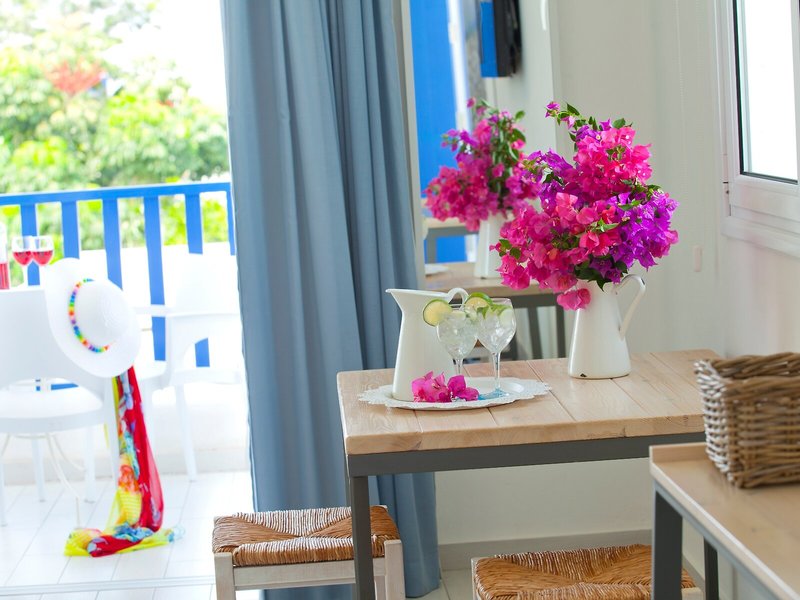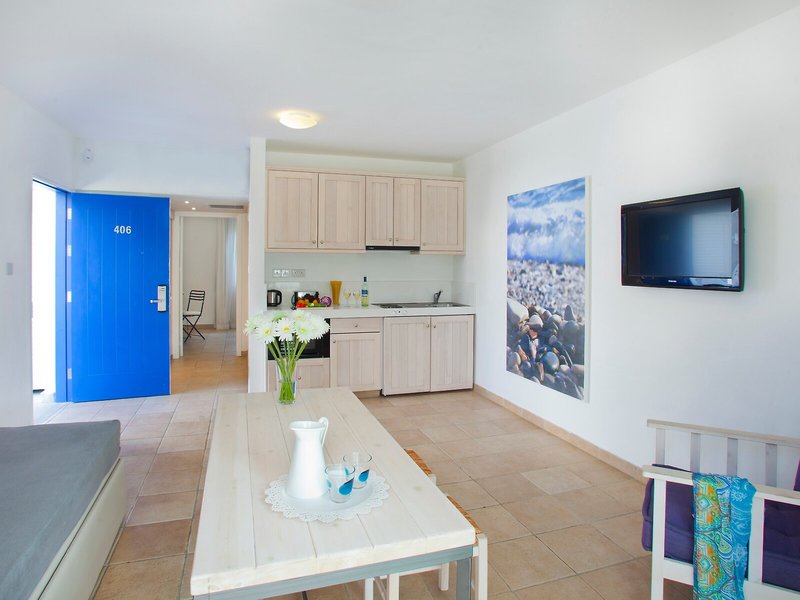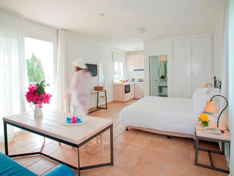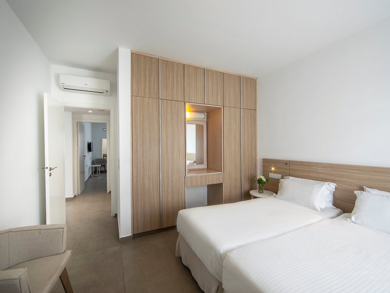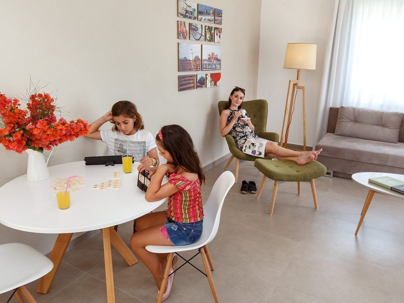 Ubytovanie: Izby sú vybavené obývacou izbou, kuchyňou a kúpeľňou. Klimatizácia a centrálne ovládané kúrenie zabezpečujú príjemnú vnútornú klímu. Väčšina izieb má štandardne balkón. Izby sú vybavené manželskou posteľou alebo rozkladacou pohovkou. K dispozícii sú samostatné spálne. Detské postieľky a prístelky je možné zabezpečiť. Trezor poskytuje najlepšiu ochranu vecí hostí. Kuchynský kút je dobre vybavený na vlastné varenie s chladničkou, minichladničkou, sporákom, mikrovlnnou rúrou, zariadením na prípravu čaju/kávy a rúrou. Pre väčšie pohodlie hostí je k dispozícii žehliaca súprava. Okrem toho je k dispozícii telefón, TV, rádio, stereo systém, DVD prehrávač a WiFi (bezplatne). Kúpeľňa so sprchovacím kútom a vaňou poskytuje hosťom sušič vlasov a župany. K dispozícii sú aj bezbariérové izby s bezbariérovou kúpeľňou. Hotel ponúka fajčiarske izby.