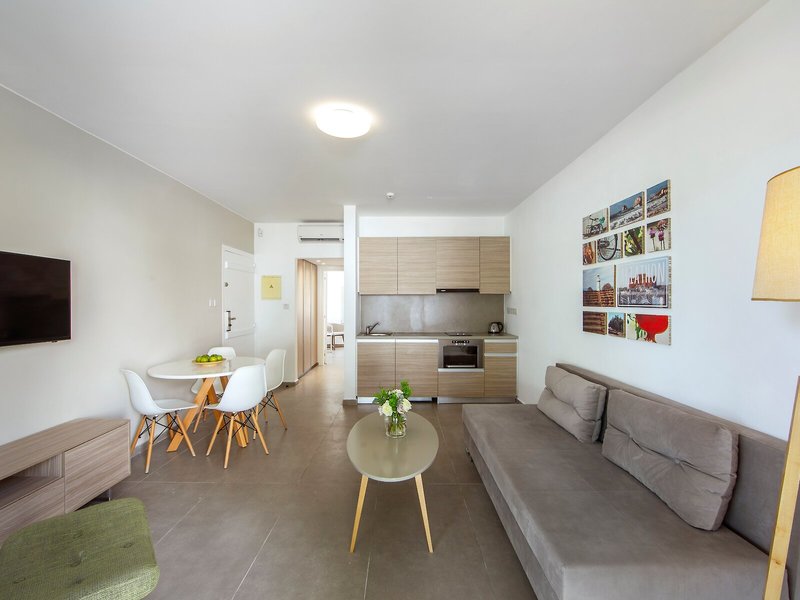 So wohnen Sie: Die Zimmer sind mit einem Wohnzimmer, einer Küche und einem Badezimmer ausgestattet, außerdem sorgen eine Klimaanlage und eine zentral steuerbare Heizung für gutes Raumklima. In den meisten Zimmern zählt ein Balkon zum Standard. Die Zimmer verfügen über ein Doppelbett oder ein Sofabett. Es sind separate Schlafzimmer vorhanden. Auch Baby- und Zustellbetten können zur Verfügung gestellt werden. Den besten Schutz für das Eigentum der Gäste bietet ein Safe. Die Kochnische ist mit einem Kühlschrank, einem Minikühlschrank, einem Herd, einer Mikrowelle, einer Tee-/Kaffeemaschine und einem Backofen gut für Selbstversorger ausgestattet. Ein Bügelset ist für den zusätzlichen Komfort der Gäste verfügbar. Darüber hinaus sind ein Telefon, ein TV-Gerät, ein Radio, eine Stereoanlage, ein DVD-Player und WiFi (ohne Gebühr) vorhanden. Im Badezimmer, mit einer Dusche und einer Badewanne ausgestattet, stehen für die Gäste ein Haartrockner und Bademäntel bereit. Außerdem sind rollstuhlgerechte Zimmer mit barrierefreiem Badezimmer buchbar. Die Unterbringung bietet Raucherzimmer.