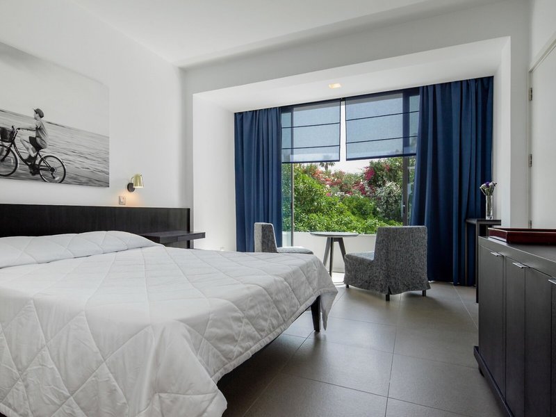 - Veranda Sea View Room (DZM2), Doppelzimmer, im Hauptgebäude, Meerseite, Meerblick, Blick auf Mediterranean Sea, ca. 28 m², letzte Teilrenovierung 2020, 1 Queen Size Bett, 1 Zustellbett, Babybett, Klimaanlage: gegen Gebühr, Mai - Oktober, zentral gesteuert, Heizung: Januar, März und Dezember, zentral gesteuert, Fußboden: Fliesenboden, Safe: ohne Gebühr, Minibar: gegen Gebühr, Softdrinks: gegen Gebühr, Wasser: gegen Gebühr, alkoholische Getränke: gegen Gebühr, Snacks: gegen Gebühr, Minibarauffüllung: täglich, Telefon, Internet: WLAN/WiFi: ohne Gebühr, Fernseher: Flatscreen, Sat-TV, Roomservice: täglich 00:00 Uhr - 23:45 Uhr, gegen Gebühr, Dusche, WC, Bademantel: ohne Gebühr, Slipper: ohne Gebühr, Föhn, Balkon: mit Sitzgelegenheit