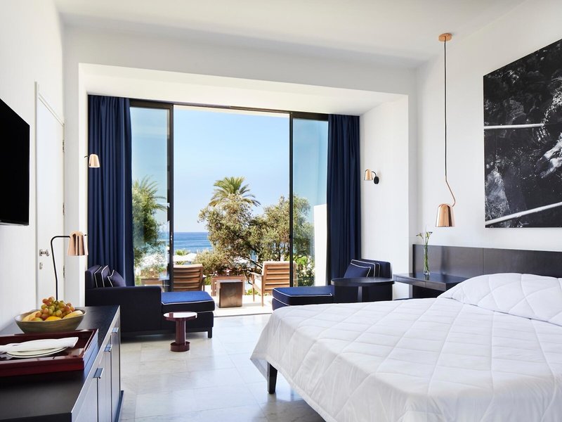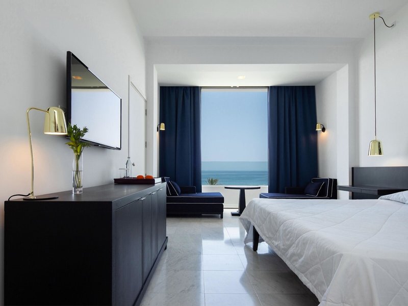 - Premium Seaview Aethon Room (DZM4), Doppelzimmer, Mindestalter im Zimmer: 16 Jahre, im Hauptgebäude, Meerseite, Meerblick, Hafenblick, Blick auf Mediterranean Sea, ca. 32 m², letzte Teilrenovierung 2020, 1 King Size Bett, Klimaanlage: ohne Gebühr, Mai - Oktober, zentral gesteuert, Heizung: Januar, März und Dezember, zentral gesteuert, Fußboden: Fliesenboden, Safe: ohne Gebühr, Minibar: gegen Gebühr, Softdrinks: gegen Gebühr, Barzahlung, Wasser: gegen Gebühr, Barzahlung, alkoholische Getränke: gegen Gebühr, Barzahlung, Snacks: gegen Gebühr, Minibarauffüllung: täglich, Telefon, Internet: WLAN/WiFi: ohne Gebühr, Fernseher: Flatscreen, Sat-TV, Roomservice: täglich 24 Stunden, gegen Gebühr, Barzahlung, Dusche, WC, Bademantel: ohne Gebühr, Slipper: ohne Gebühr, Föhn, Balkon: mit Sitzgelegenheit