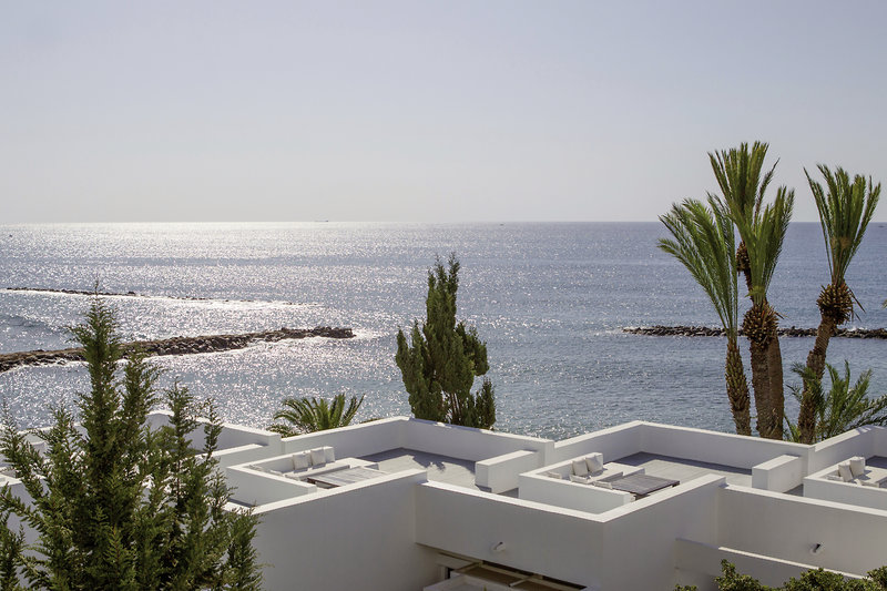 - 46-50 qm, Juniorsuite, Meerblick, kombinierter Wohn-/Schlafraum, Sitzecke, Doppelbetten (1 Doppel- oder 2 Einzelbetten), Badewanne, Regendusche, WC, Bademantel, Badeslipper, Haartrockner, Klimaanlage, Heizung, Minibar kostenpflichtig, Safe, TV (Smart-TV), Espressomaschine, Terrasse (möbliert), bei Ankunft im Zimmer Obstkorb, Wein, Wasser, sowie Zugang zu einer Dachterrasse mit Panoramablick auf den Hafen von Paphos