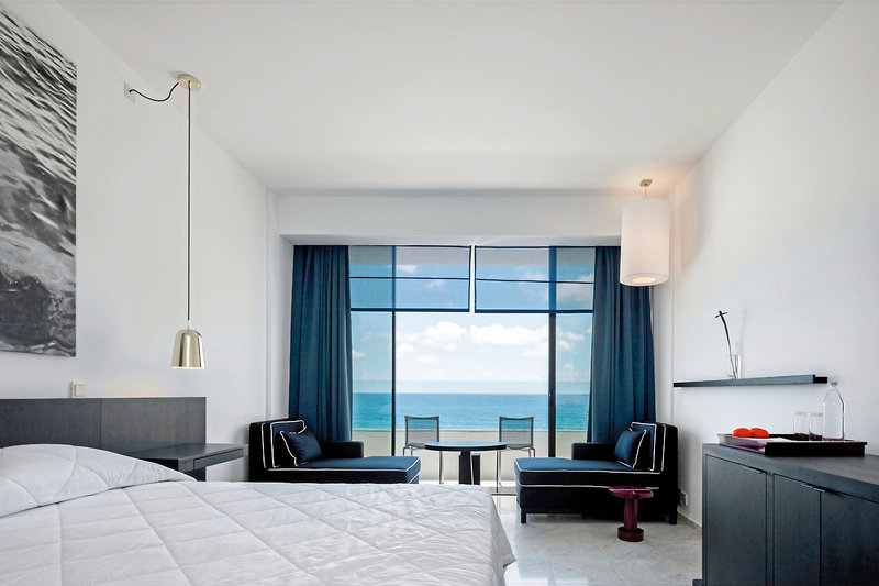 - 26-30 qm, Doppel, Meerblick, Sitzecke, Doppelbetten (1 Doppel- oder 2 Einzelbetten), Dusche, WC, Bademantel, Badeslipper, Haartrockner, Klimaanlage, Heizung, Minibar kostenpflichtig, Safe, TV (Smart-TV), Espressomaschine, Terrasse (möbliert), bei Ankunft im Zimmer Obstkorb, Wasser