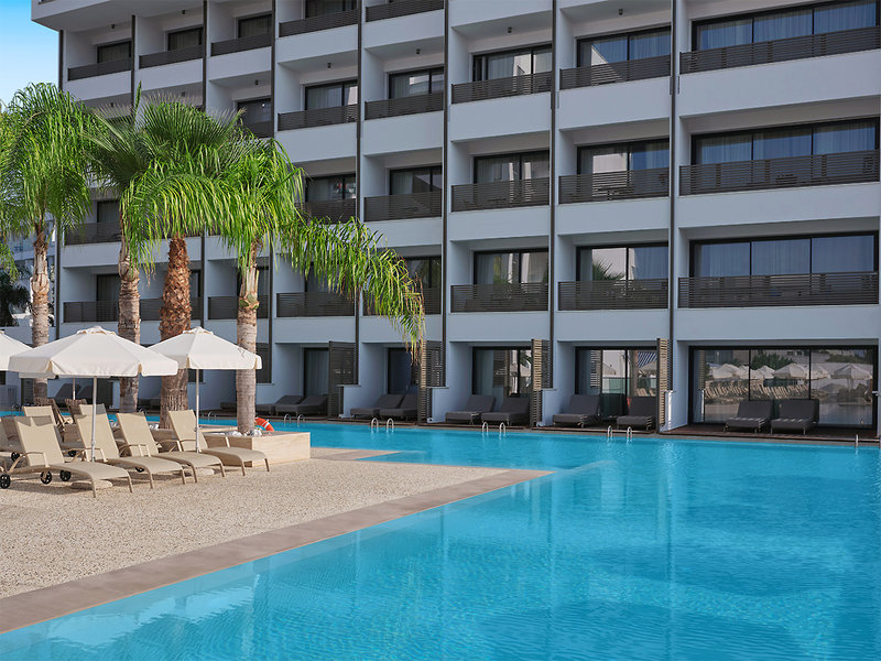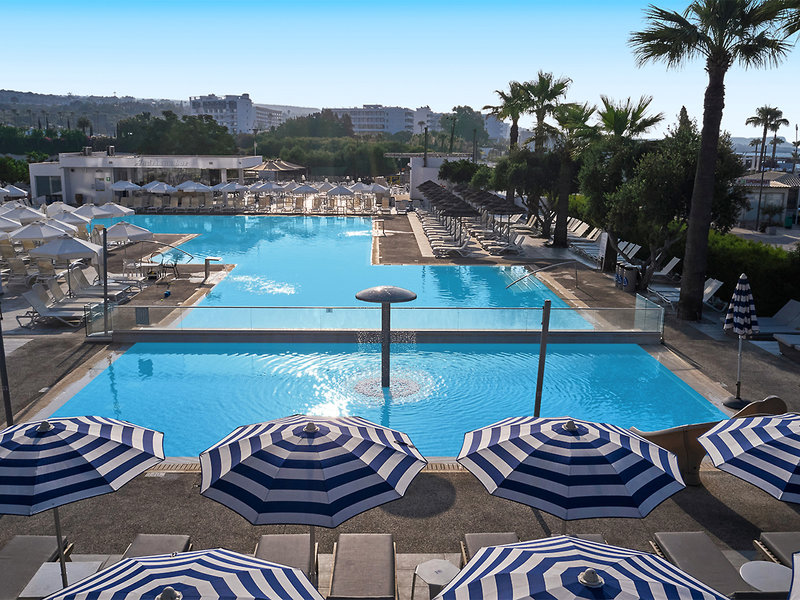 Ausstattung: Komfortable Hotelanlage mit mehreren Wohngebäuden. Im Außenbereich Swimmingpool, Sonnenterrasse, Liegen und Schirme am Pool, Badetücher (gegen Kaution), 2 Poolbars, Snackrestaurant. Hauptrestaurant, auf der Dachterrasse Á-la-carte Restaurant mit traumhaftem Meerblick. Empfangsbereich mit Rezeption und Sitzgelegenheiten, WLAN. Landeskategorie: 4 Sterne, 357 Zimmer.