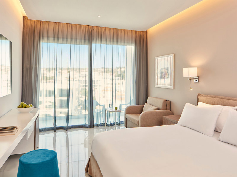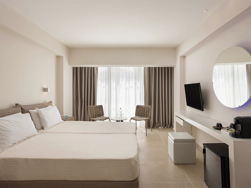 Ubytovanie: Dvojlôžková izba (cca 21 m²), klimatizácia, minichladnička, TV, telefón, Wi-Fi, trezor na prenájom. Kúpeľňa/sprcha, WC, fén. Balkón/terasa. Voliteľne s balkónom a čiastočným výhľadom na more (DSS) alebo priamym výhľadom na more (DZM). Max. 2 dospelí