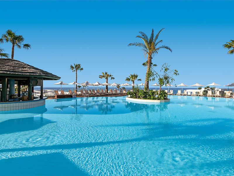 Ausstattung: Geschmackvoll gestaltete Luxusanlage mit traumhaftem Meerblick. In der weitläufigen Gartenanlage große Swimmingpoollandschaft, bestehend aus separatem Erwachsenenpool, Familienpool, Aktivitätenpool und Kinderbecken. Sonnenterrassen, Liegen und Schirme (an den Pools inkl., am Strand geg. Geb.; Badetücher inkl.). 2 Poolbars mit Sitzterrasse. Empfangsbereich mit Rezeption (24 Stunden), Restaurant mit Sitzterrasse, À-la-carte-Restaurant, Loungebar, Minimarkt. WLAN in der gesamten Hotelanlage. Landeskat.: 4 Sterne, 267 Zimmer, 5 Etagen, Lift.
