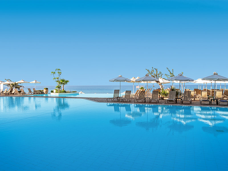 Vybavenie: Vkusne navrhnutý luxusný rezort s úžasným výhľadom na more. Priestranné záhrady ponúkajú veľký bazénový komplex pozostávajúci zo samostatného bazéna pre dospelých, rodinného bazéna, bazéna pre aktivity a detského bazéna. Slnečné terasy, ležadlá a slnečníky (v cene pri bazénoch, plážové osušky). Dva bary pri bazéne s posedením na terase. Recepcia s 24-hodinovou prevádzkou, reštaurácia s posedením na terase, reštaurácia à la carte, lounge bar a minimarket. Wi-Fi je k dispozícii v celom hoteli. Národná kategória: 4 hviezdičky, 267 izieb, 5 poschodí, výťah.