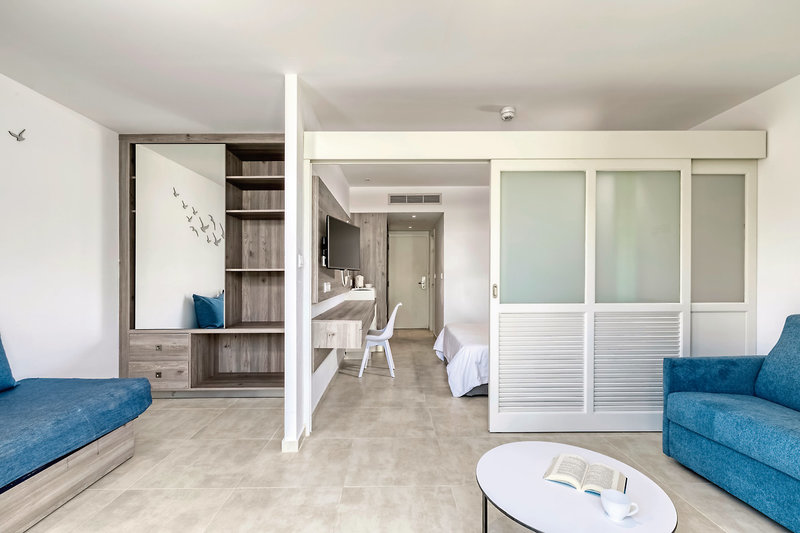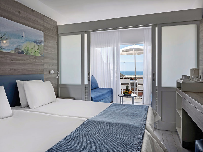 - 26-30 qm, Familien, Hauptgebäude, Meerblick, optisch getrennter Wohn-/Schlafraum (mit Schiebetür), Doppelbetten (1 Doppel- oder 2 Einzelbetten), 2 Sofabetten, bodengleiche Dusche, WC, Haartrockner, Klimaanlage, ca. 1.5.-31.10., Heizung, ca. 1.11.-31.3., Mini-Kühlschrank, Safe, TV, Wasserkocher, Kaffee/Tee, Balkon oder Terrasse (möbliert)