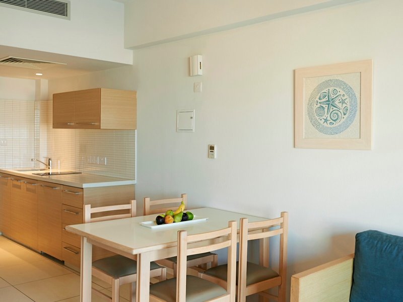 So wohnen Sie: In den Zimmern sind eine Küche und ein Badezimmer vorhanden, für das richtige Raumklima sorgt eine Klimaanlage. In den meisten Unterkünften genießen die Gäste von Balkon oder Terrasse einen Ausblick auf das Meer. Die Zimmer verfügen über ein Kingsizebett und ein Sofabett. Es gibt separate Schlafzimmer. Zustellbetten können angefordert werden. Außerdem sind ein Safe und eine Minibar verfügbar. In der Kochnische befinden sich ein Kühlschrank, eine Mikrowelle und eine Tee-/Kaffeemaschine. Besten Urlaubskomfort bieten ein Telefon mit Direktwahl, Sat-TV, ein Radio und WiFi. Im Badezimmer, mit einer Dusche ausgestattet, stehen für die Gäste ein Haartrockner und ein Telefon bereit. Buchbar sind rollstuhlgerechte Zimmer. Das Hotel bietet Familien- und Nichtraucherzimmer.