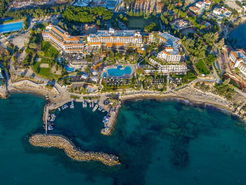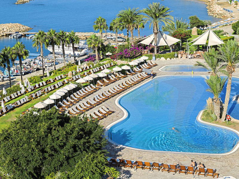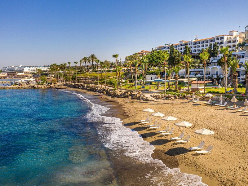 Poloha a okolie Priamo na cca 300 m dlhej piesočnatej pláži. Coral Bay Village s obchodmi, barmi, tavernami cca 1 km. Paphos cca 15 km (aj taxíkom). Autobusová zastávka priamo pri hoteli. Malý rybársky prístav/marína pred komplexom. Čas prenosu: cca 50 minút.
