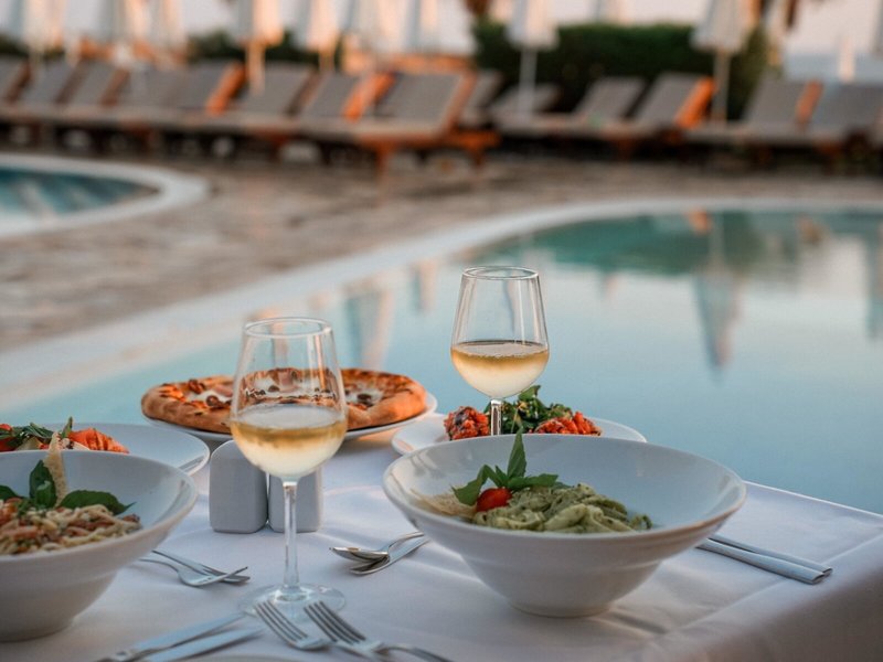 - Restaurant „Romazzino Restaurant“: ab 12 Jahre, glutenfreie Gerichte, lactosefreie Gerichte, vegetarische Gerichte, vegane Gerichte, à la carte, Anfrage & Reservierung notwendig, gegen Gebühr, Mai - Oktober, mehrmals pro Woche, klimatisierbar, mit Terrasse