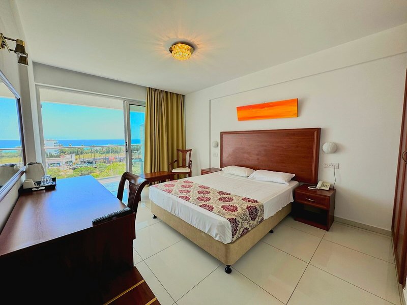 - Štandardná izba s výhľadom na more (DZM1), dvojlôžková izba, nefajčiarska izba, v hlavnej budove, výhľad na more, cca 20 m², posledná kompletná rekonštrukcia 2019, posledná čiastočná rekonštrukcia 2024, 2 jednolôžka (90x190cm), 1 manželská posteľ (150x190cm), 1 prístelka (90x190cm), 1 detská postieľka (60x120cm), detská postieľka, individuálne ovládaná klimatizácia (chlad/teplo), dlažba, trezor, chladnička, kávovar/čajník, rýchlovarná kanvica, telefón, Wi-Fi, TV s plochou obrazovkou, satelitná TV, upratovacia služba, vaňa alebo sprchovací kút, WC, fén, kozmetické zrkadlo, balkón s posedením