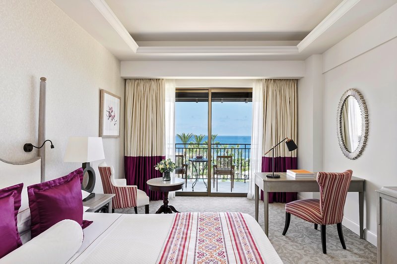 - 31-35 m2, dvojlôžková, deluxe, výhľad na more (bočný), posedenie, písací stôl, manželské postele (1 king alebo 1 oddelené), vaňa, WC, župan, papuče, sušič vlasov, klimatizácia, kúrenie, minibar pre za poplatok, trezor, TV, rýchlovarná kanvica, Káva/čaj, balkón (zariadený), vankúšové menu, voda na izbe pri príchode