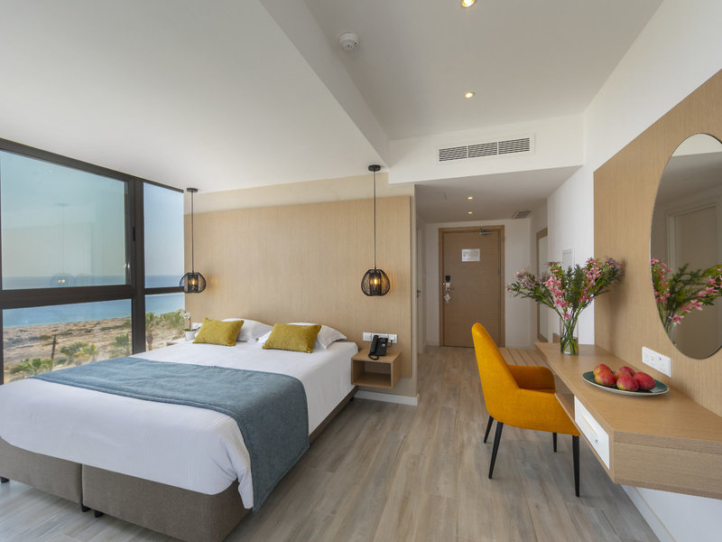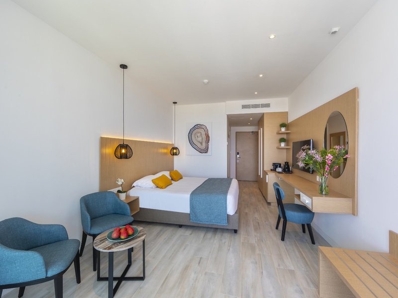 - Superior Sea View (STM1), štúdio, nefajčiarska izba, v hlavnej budove, výhľad na more, cca 26 m², posledná kompletná rekonštrukcia v roku 2019, celkový počet izieb v tomto type izby: 1, rozloženie: kombinovaná obývačka/ spálňa, 1 manželská posteľ (140x190cm), Klimatizácia: zadarmo, v závislosti od ročného obdobia, podlaha: dlažba, trezor: zadarmo, chladnička: zadarmo, príslušenstvo na prípravu kávy/čaju, telefón, Internet: WLAN/WiFi : zadarmo, TV: plochá obrazovka, v obývacej časti, upratovanie: denne, zadarmo, sprcha, WC, balkón
