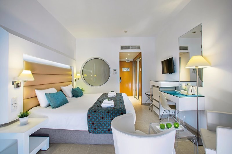 - 21-25 qm, Doppel, Deluxe, Meerblick, Bettwäsche, Handtücher und Matratzen aus 100% Bio-Baumwolle, Doppelbetten (1 Doppel- oder 2 Einzelbetten), bodengleiche Dusche, WC, Bademantel, Badeslipper, Haartrockner, Klimaanlage, Heizung, Mini-Kühlschrank, Safe (kostenpflichtig), TV, Wasserkocher, Kaffee/Tee, Balkon (möbliert), bei Ankunft im Zimmer Obstkorb, Flasche Sekt, Schokolade, Freier Zugang zur Leonardo Family Lounge von 08:00 bis 20:00 Uhr, 7 Tage die Woche. VIP-Frühstück, Tee- und Kaffeezubereitungsmöglichkeiten, eine Auswahl an Premium-Getränken und Snacks sind während der gesamten Öffnungszeiten verfügbar. Spiel- und Aktivitätsbereich für kleine Kinder