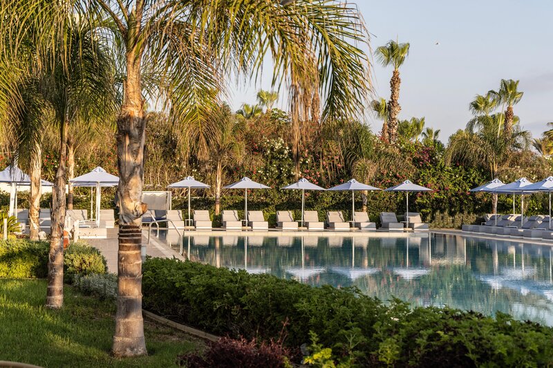 Ausstattung: Garten, Pool, Kinderpool. Liegen, Schirme, Auflagen am Pool und am Strand (geg. Geb.), Handtücher am Pool (geg. Geb.), Pool-Bar, Sonnenterrasse. Empfangshalle, Rezeption, Lobby-Bar, Safe (geg. Geb.), TV-Lounge. 3 Restaurants (à la carte) mit nationalen, internationalen, mediterranen und asiatischen Speisen, Terrasse, 2 Bars, Shop, Parkplatz (geg. Geb.). 148 Zimmer, 6 Etagen, 2 Lifte.