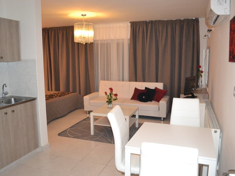 Vaše ubytovanie: Izby majú obývaciu izbu, kuchyňu a kúpeľňu. Klimatizácia a kúrenie zabezpečujú príjemnú klímu. Väčšina izieb má aj balkón. Izby sú vybavené manželskou posteľou, manželskou posteľou alebo rozkladacou pohovkou. K dispozícii sú samostatné spálne. Prístelky je možné vyžiadať. K dispozícii je aj trezor a písací stôl. Kuchynka je dobre vybavená na vlastné stravovanie s chladničkou, sporákom, mikrovlnnou rúrou, zariadením na prípravu čaju/kávy a rúrou. Pre pohodlie hostí je k dispozícii žehliaca súprava. K dispozícii je aj telefón, TV a bezplatné Wi-Fi pripojenie na internet. Kúpeľňa so sprchovacím kútom a vaňou je vybavená sušičom vlasov. Ubytovanie ponúka rodinné a nefajčiarske izby.
