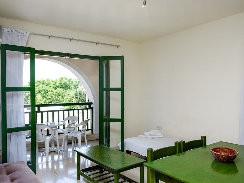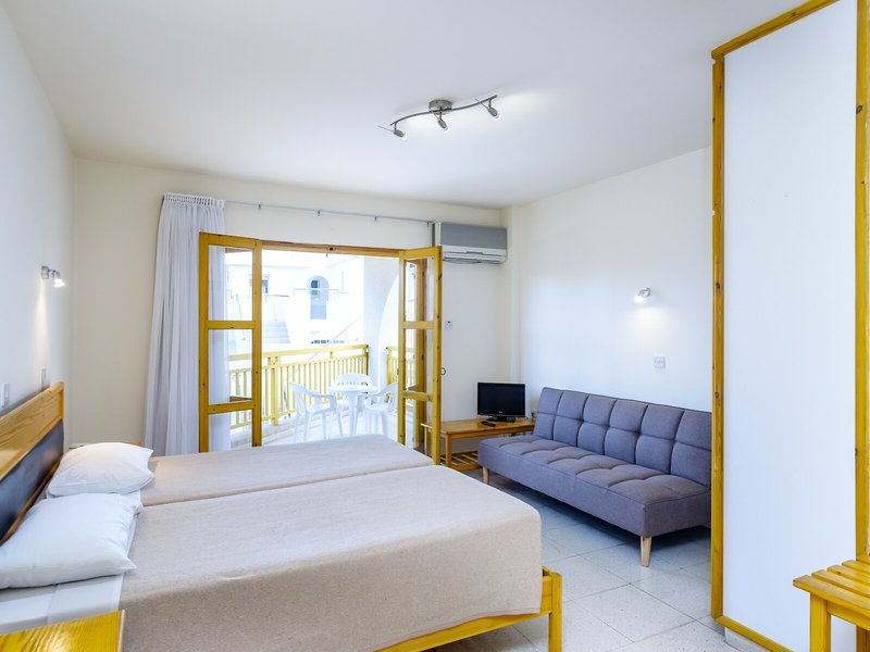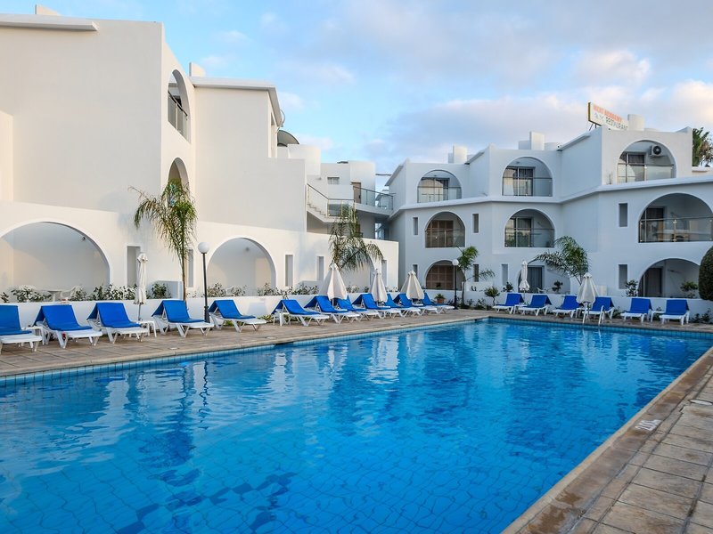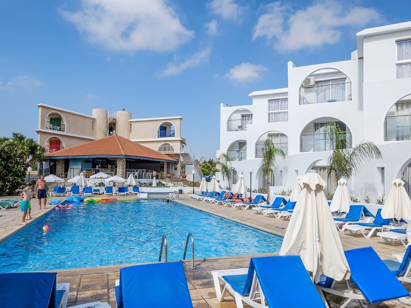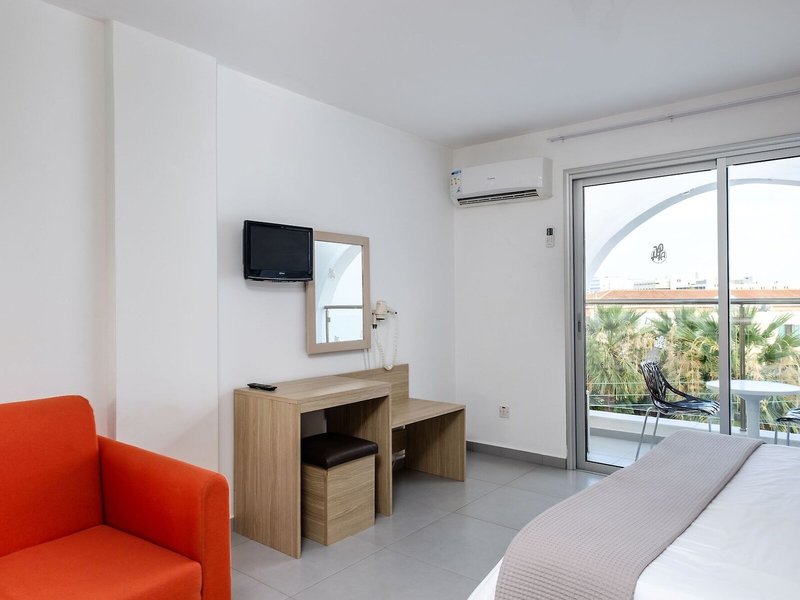 Poloha a okolie Tento atraktívny plážový hotel má dobrú centrálnu polohu v turistickom centre. Verejná doprava je len asi 100 m od hotela. V blízkom okolí (cca 100 m) nájdete širokú škálu nákupných možností, ako aj početné reštaurácie, rôzne bary, krčmy, kaviarne a celý rad ďalších zábavných podnikov. Príjemná pláž s tyrkysovo modrým morom je vzdialená asi 200 m. Do nočného klubu sa dostanete pešo za pár minút (asi 1 km). Do neďalekého centra mesta (cca 3 km) sa ľahko dostanete pešo dlhou prechádzkou, lacno verejnou dopravou alebo pohodlne autom. Prístav Paphos je vzdialený približne 1,5 km a letisko Paphos približne 15 km od hotela.