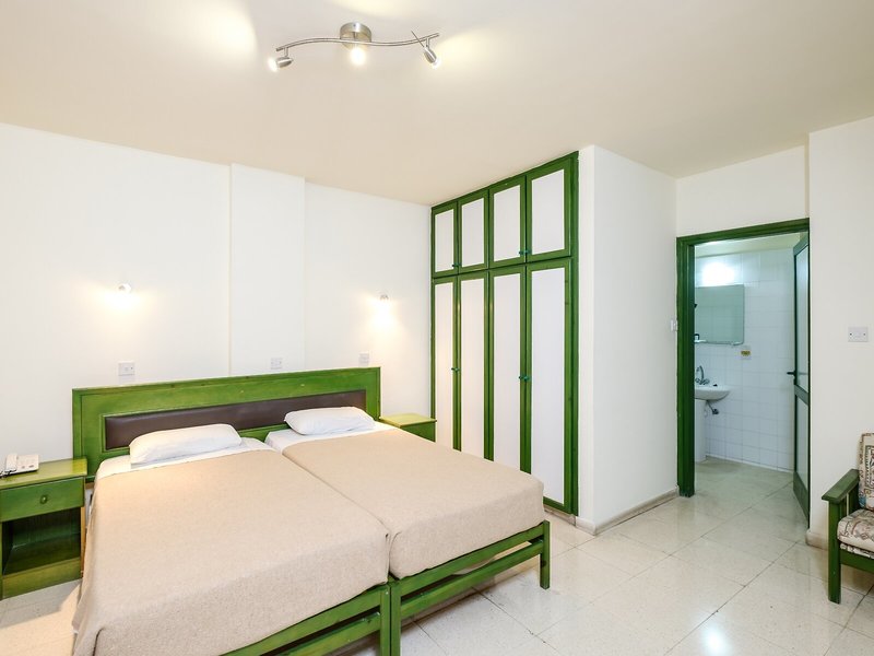 Lage & Umgebung Das attraktive Strandhotel befindet sich in einer guten und zentralen Lage mitten im Touristenzentrum. Die öffentlichen Verkehrsmittel sind nur ca. 100 m vom Hotel entfernt. In der näheren Umgebung (etwa 100 m) erwarten Sie vielfältige Einkaufsmöglichkeiten sowie zahlreiche Restaurants, diverse Bars, Pubs, Cafés und umfangreiche andere Unterhaltungsmöglichkeiten. Der einladende Strand mit seinem türkisblauen Meer befindet sich in ca. 200 m. Eine Diskothek ist in wenigen Gehminuten (ca. 1 km) erreichbar. Das in der Nähe gelegene Stadtzentrum (ca. 3 km entfernt) können Sie bei einem ausgiebigen Spaziergang gut zu Fuß, preiswert mit den öffentlichen Verkehrsmitteln oder bequem mit dem Auto erreichen. Der Hafen vom Paphos ist ca. 1,5 km und der Flughafen Paphos etwa 15 km vom Hotel entfernt.