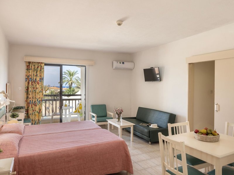 - Studio (STX1), Studio, im Hauptgebäude, Landseite, Gartenblick, Landblick, ca. 30 - 32 m², Gesamtanzahl der Räume in diesem Zimmertyp: 15, Aufteilung wie folgt: kombiniertes Wohn-/Schlafzimmer, 2 Einzelbetten (90x200cm), 1 Schlafsofa (120x180cm), Babybett, Klimaanlage: individuell regelbar, kalt, warm, Heizung: individuell regelbar, Fußboden: Fliesenboden, Sofa, Schreibtisch, Kochnische, Kühlschrank, Backofen, Kochplatte, Mikrowelle, Kaffeemaschine, Kaffee-/Teezubereiter, Wasserkocher, Toaster, Esstisch, Telefon, Internet: WLAN/WiFi, Fernseher: Flatscreen, Reinigungsservice, Badewanne, WC, Balkon: mit Sitzgelegenheit