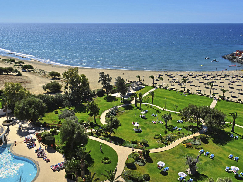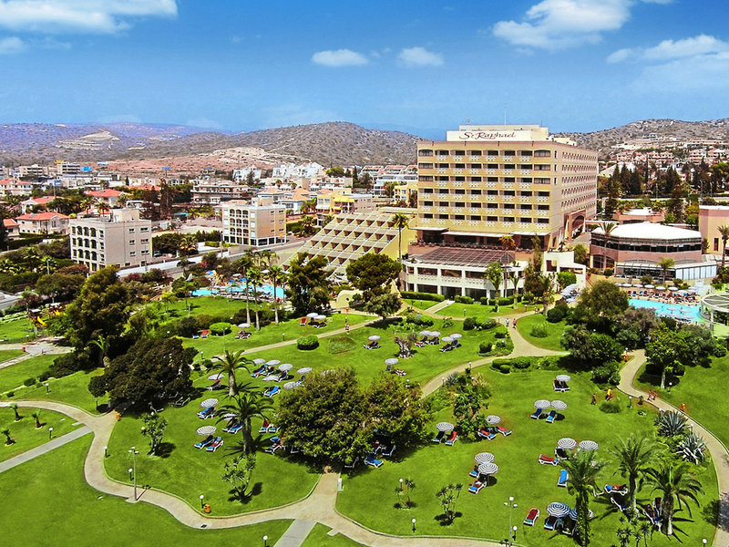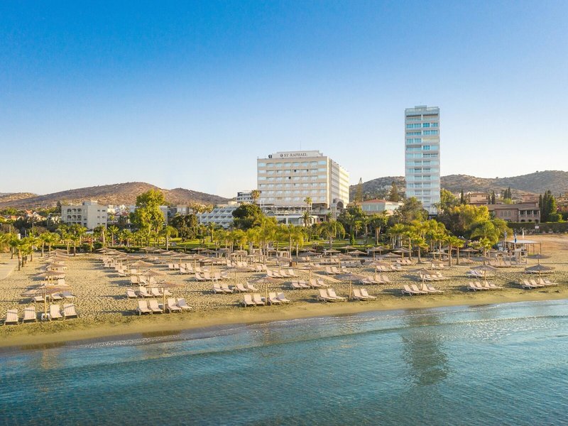 Poloha a okolie: Tento luxusný 5-hviezdičkový rezort sa nachádza priamo na jemnej piesočnatej pláži St. Raphael, jednej z najväčších pláží v Limassole. Centrum mesta Limassol je vzdialené približne 10 minút jazdy autom a najbližšie mesto je vzdialené asi 11 km (12 minút jazdy autom). Medzinárodné letisko Larnaka je vzdialené približne 46 km (40 minút jazdy autom) a medzinárodné letisko Paphos je vzdialené približne 74 km (54 minút jazdy autom).