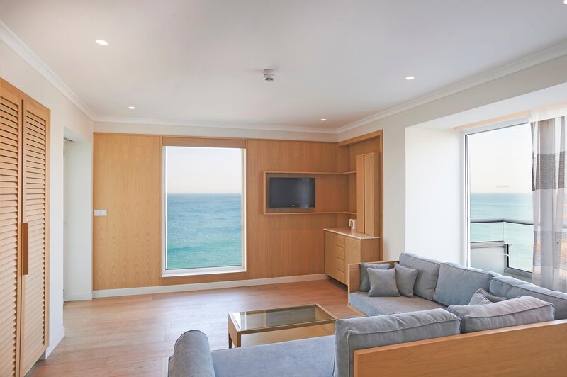 Superior Zimmer (Balkon, Meerfront): Minibar (geg. Geb.). Wasserkocher. TV, Telefon, Internet (geg. Geb.), Safe (geg. Geb.). Bad oder Dusche/WC, Föhn. Balkon. Max. 3E.
