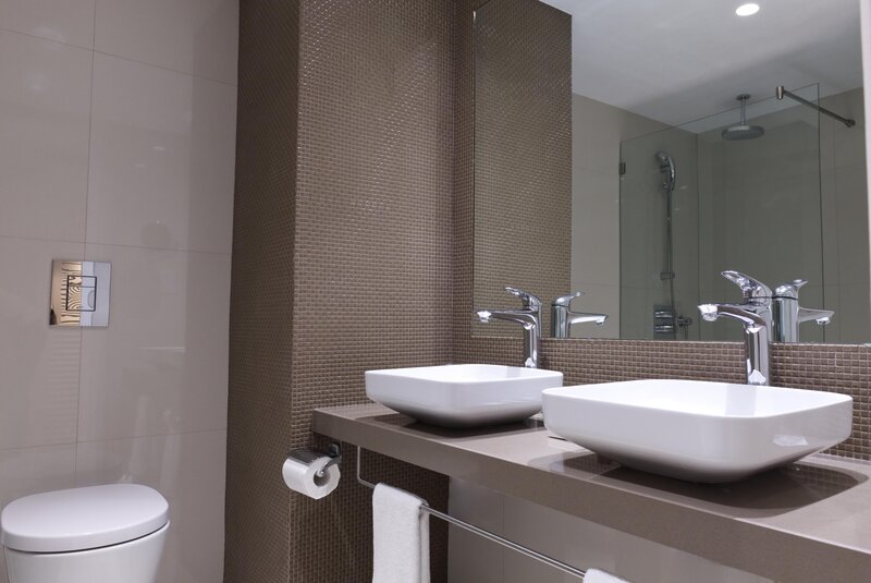 Standard Zimmer (Balkon, teilweise Meerblick): Minibar (geg. Geb.). Wasserkocher. TV, Telefon, Internet (geg. Geb.), Safe (geg. Geb.). Bad oder Dusche/WC, Föhn. Balkon. Max. 3E.