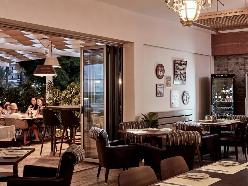 - Hlavná reštaurácia Lavinia: Kuchyňa: grécka, medzinárodná, talianska, typická pre krajinu, regionálna, ryby/morské plody, grilované jedlá, diétna kuchyňa, bezlepkové jedlá, detský bufet: zdarma, v cene All Inclusive, bezlaktózové jedlá , ľahké jedlá, sezónne jedlá, vegetariánske jedlá, plnohodnotné jedlá, bufet, show cooking, klimatizované, s terasou, detská stolička, vhodné oblečenie