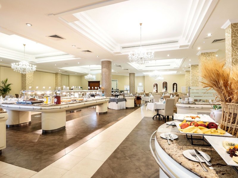 - Hauptrestaurant „Leda“: Küche: asiatisch, griechisch, international, italienisch, landestypisch, mediterran, orientalisch, regional, Fisch/Meeresfrüchte, Grillgerichte, glutenfreie Gerichte: ohne Gebühr, Anfrage & Reservierung notwendig, lactosefreie Gerichte: ohne Gebühr, Anfrage & Reservierung notwendig, vegetarische Gerichte: ohne Gebühr, Anfrage & Reservierung nicht notwendig, Buffet, Showcooking, ohne Gebühr, täglich 07:00 Uhr - 10:00 Uhr, 12:30 Uhr - 14:30 Uhr, 18:30 Uhr - 21:30 Uhr, klimatisierbar, angemessene Kleidung erwünscht