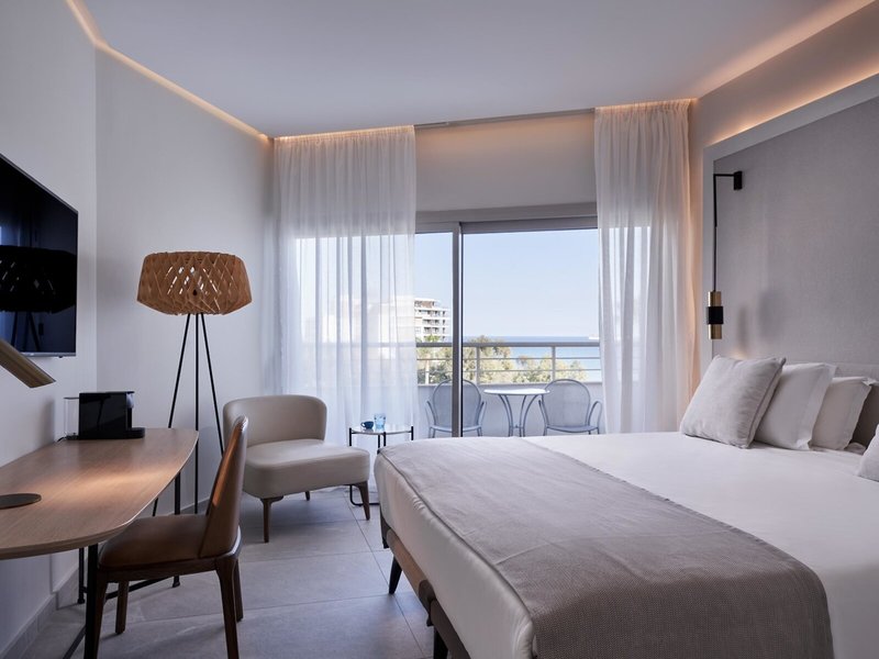 - Superior room Sea View (DZM2), Doppelzimmer, Nichtraucherzimmer, im Hauptgebäude, Meerseite, Meerblick, Poolblick, ca. 27 m², letzte Komplettrenovierung 2011, Gesamtanzahl der Räume in diesem Zimmertyp: 1, Aufteilung wie folgt: 1 Schlafzimmer, 1 King Size Bett (180x195cm), Klimaanlage: ohne Gebühr, Mai - Oktober, zentral gesteuert, kalt, Heizung: zentral gesteuert, Fußboden: Fliesenboden, Safe: ohne Gebühr, Schreibtisch, Kühlschrank: ohne Gebühr, Nespressomaschine, Kaffee-/Teezubereiter, Wasserkocher, Minibar: ohne Gebühr, bei All Inclusive inklusive, Softdrinks: ohne Gebühr, bei All Inclusive inklusive, Wasser: ohne Gebühr, bei All Inclusive inklusive, alkoholische Getränke: ohne Gebühr, bei All Inclusive inklusive, Minibarauffüllung: täglich, Telefon, Internet: WLAN/WiFi: ohne Gebühr, Fernseher: Flatscreen, im Schlafzimmer, deutsches Programm, Sat-TV, Kabel-TV, SKY-Programme, Roomservice: täglich 07:00 Uhr - 22:45 Uhr, gegen Gebühr, Reinigungsservice: täglich, ohne Gebühr, Dusche, Badewanne, WC, Bademantel: ohne Gebühr, Slipper: ohne Gebühr, Föhn, Balkon: mit Sitzgelegenheit