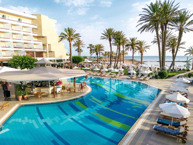 Poloha a okolie Nachádza sa priamo pri mori, v mierne sa zvažujúcej piesočnatej zátoke (niektoré so skalnými platňami na okraji vody) a mólom do vody. Centrum Paphos s nákupnými možnosťami a starobylými pamiatkami je vzdialené cca 2,5 km, rybársky prístav Paphos s reštauráciami a tavernami cca 3 km. Autobusová zastávka je vzdialená cca 100 m. Letisko Paphos je vzdialené približne 15 km a letisko Larnaca približne 140 km.