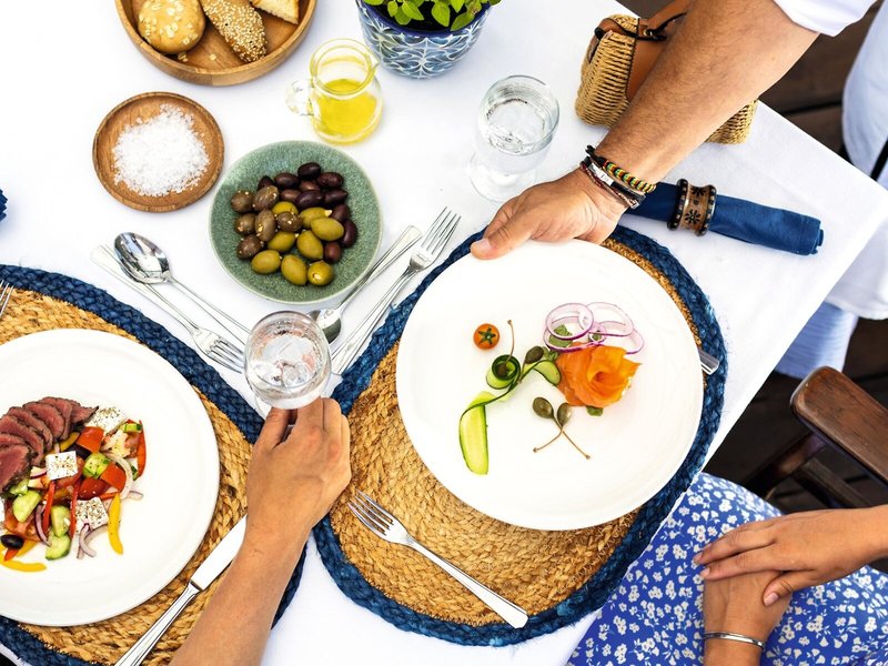 - Hlavná reštaurácia Odysseas: Kuchyňa: medzinárodná, regionálna, diétna kuchyňa: bez poplatku, na vyžiadanie nie je potrebné, bezlepkové jedlá: bez poplatku, na vyžiadanie nutné, bezlaktózové jedlá: bez poplatku, na vyžiadanie nutné, ľahké jedlá: bez poplatku, na vyžiadanie nie potrebné, sezónne jedlá: bez poplatku, na vyžiadanie nie je potrebné, vegetariánske jedlá: bez poplatku, na vyžiadanie nie je potrebné, bufet, show cooking, nie je potrebná požiadavka a rezervácia, bez poplatku, denne 7:00 - 10:00 hod. 18:30 - 22:00, klimatizované, s terasou, vhodné oblečenie