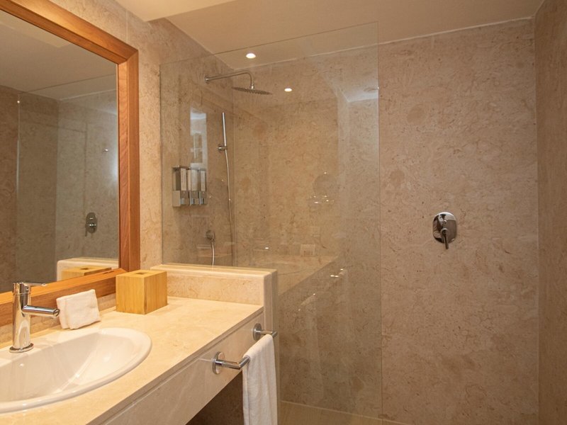 - Junior Suite (JSG1), Juniorsuite, Nichtraucherzimmer, im Hauptgebäude, Neubau, Gartenblick, ca. 45 m², letzte Komplettrenovierung 2023, Gesamtanzahl der Räume in diesem Zimmertyp: 1, Aufteilung wie folgt: kombiniertes Wohn-/Schlafzimmer, Moskitonetz, Klimaanlage: individuell regelbar, zentral gesteuert, kalt, Fußboden: Fliesenboden, Safe: ohne Gebühr, Deckenventilator, Sofa, Schreibtisch, Bügeleisen, Bügelbrett, Kühlschrank, Kaffeemaschine, Kaffee-/Teezubereiter, Esstisch, Minibar: gegen Gebühr, Softdrinks: gegen Gebühr, Wasser: gegen Gebühr, alkoholische Getränke: gegen Gebühr, Minibarauffüllung, Telefon, Internet: WLAN/WiFi: ohne Gebühr, Fernseher: Flatscreen, im Schlafzimmer, deutsches Programm, Badewanne oder Dusche, WC, Bademantel: ohne Gebühr, Slipper: ohne Gebühr, Föhn, Kosmetikspiegel, Balkon oder Terrasse: mit Sitzgelegenheit