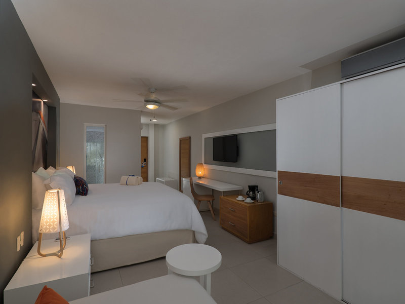 - Club Essentia (DZX4), Doppelzimmer, Nichtraucherzimmer, Poolseite, Südseite, Poolblick, Gartenblick, ca. 30 - 35 m², letzte Komplettrenovierung 2015, Gesamtanzahl der Räume in diesem Zimmertyp: 1, Aufteilung wie folgt: kombiniertes Wohn-/Schlafzimmer, 1 King Size Bett (150x200cm), Klimaanlage: ohne Gebühr, bei All Inclusive inklusive, Januar - Dezember, individuell regelbar, kalt, Fußboden: Fliesenboden, Safe: ohne Gebühr, Deckenventilator, Bügeleisen, Bügelbrett, Kaffeemaschine, Kaffee-/Teezubereiter, Esstisch, Minibar: ohne Gebühr, Softdrinks: ohne Gebühr, Wasser: ohne Gebühr, alkoholische Getränke: ohne Gebühr, Snacks: ohne Gebühr, Minibarauffüllung: täglich, Telefon, Internet: WLAN/WiFi: ohne Gebühr, Fernseher: Flatscreen, Kabel-TV, Radio, Roomservice: täglich, ohne Gebühr, Butlerservice: täglich, ohne Gebühr, Reinigungsservice: täglich, ohne Gebühr, Dusche, Slipper: ohne Gebühr, Föhn, Kosmetikspiegel, Balkon oder Terrasse: mit Sitzgelegenheit
