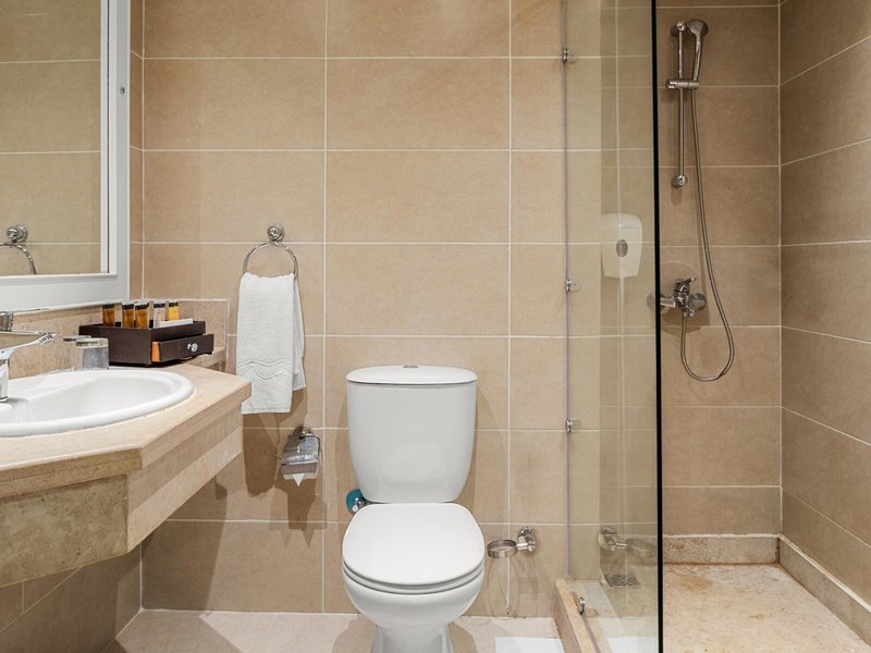 - Standard Pool View Room (DZX2), Doppelzimmer, Nichtraucherzimmer, im Hauptgebäude, im Nebengebäude, Poolblick, Blick auf Aqua park, ca. 32 m², letzte Komplettrenovierung 2016, letzte Teilrenovierung 2018, Gesamtanzahl der Räume in diesem Zimmertyp: 1, Aufteilung wie folgt: 1 Schlafzimmer, Babybett: ohne Gebühr, Klimaanlage: ohne Gebühr, individuell regelbar, Fußboden: Fliesenboden, Safe: ohne Gebühr, Kaffee-/Teezubereiter, Minibar: ohne Gebühr, Wasser: ohne Gebühr, Telefon, Internet: WLAN/WiFi: ohne Gebühr, Fernseher: Flatscreen, deutsches Programm, Sat-TV, Roomservice: täglich, gegen Gebühr, Reinigungsservice: täglich, ohne Gebühr, Dusche, WC, Föhn, Kosmetikspiegel, Balkon oder Terrasse: mit Sitzgelegenheit