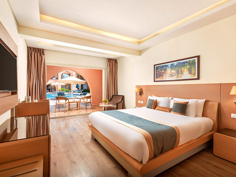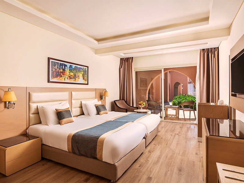 Lage: Zum hoteleigenen Abschnitt am Sandstrand des Schwesterhotels Dana Beach sind es ca. 900 m (Shuttleservice). Bis zum Zentrum von Hurghada sind es ca. 25 Fahrminuten.