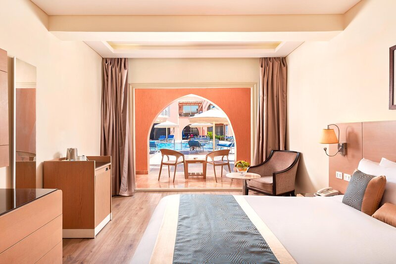 Poloha: Do vlastnej časti hotela na piesočnatej pláži sesterského hotela Dana Beach je to cca 900 m (kyvadlová doprava). Cesta autom do centra Hurghady trvá asi 25 minút.