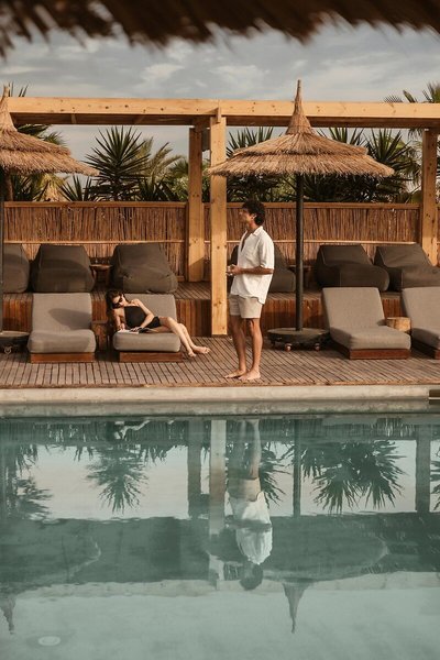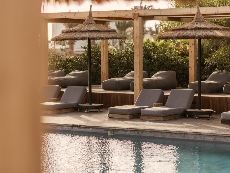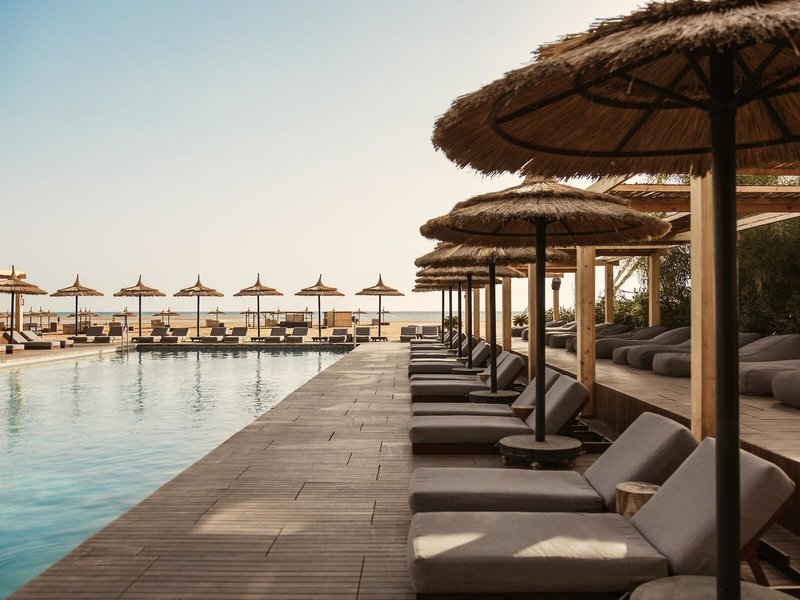 Ausstattung: 2 Pools. Liegen, Schirme, Handtücher am Pool und am Strand (geg. Geb.), Pool-Bar. Empfangshalle, Rezeption, Lobby-Bar, Safe (geg. Geb.). 2 Restaurants (à la carte) mit Terrasse, 2 Bars, Shop, Parkplatz (geg. Geb.). 100 Zimmer, 2 Etagen.