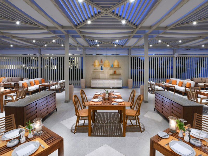 - Restaurant „Aqua Restaurant“: Küche: mediterran, leichte Gerichte: gegen Gebühr, Anfrage notwendig, à la carte, gegen Gebühr, täglich 19:00 Uhr - 22:00 Uhr, am Strand