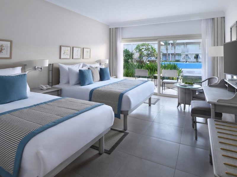 - Double Deluxe Pool View (DZX4), Doppelzimmer, im Hauptgebäude, Poolblick, ca. 36 m², letzte Komplettrenovierung 2020, Gesamtanzahl der Räume in diesem Zimmertyp: 1, Aufteilung wie folgt: 1 Schlafzimmer, Klimaanlage: ohne Gebühr, individuell regelbar, kalt, warm, Heizung, Fußboden: Fliesenboden, Safe: ohne Gebühr, Minibar: gegen Gebühr, Softdrinks: gegen Gebühr, Wasser: ohne Gebühr, alkoholische Getränke: gegen Gebühr, Snacks: gegen Gebühr, Minibarauffüllung: täglich, Telefon, Internet: WLAN/WiFi: ohne Gebühr, Fernseher: Flatscreen, deutsches Programm, Sat-TV, Roomservice: täglich 24 Stunden, gegen Gebühr, Reinigungsservice: täglich, ohne Gebühr, Dusche, WC, Bademantel: ohne Gebühr, Slipper: ohne Gebühr, Föhn, Kosmetikspiegel, Balkon: mit Sitzgelegenheit