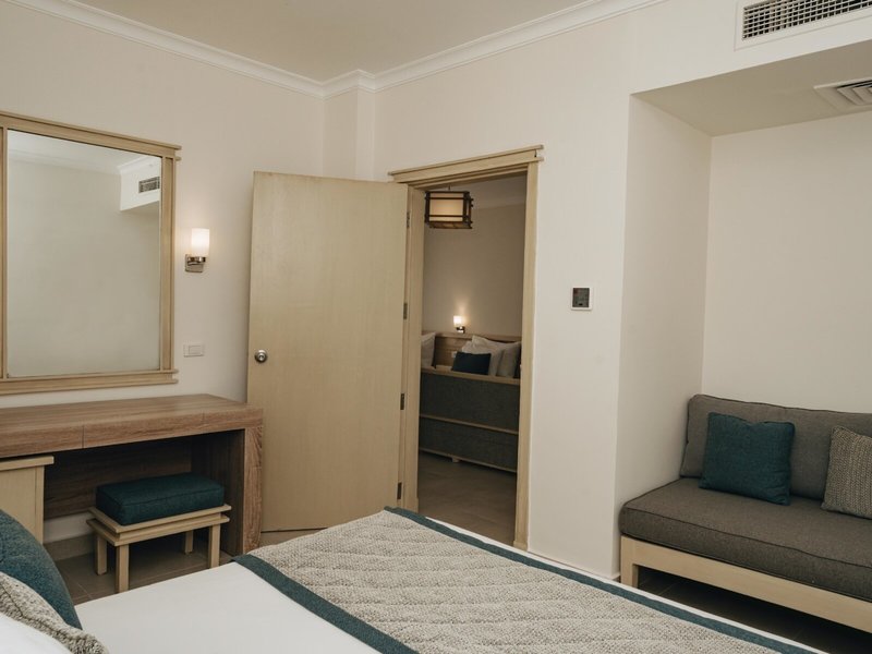 - Family Pool (FZX1), Familienzimmer, Nichtraucherzimmer, im Nebengebäude, Poolseite, Poolblick, Gartenblick, Blick auf pool view, ca. 51 m², letzte Teilrenovierung 2023, Gesamtanzahl der Räume in diesem Zimmertyp: 2, Aufteilung wie folgt: kombiniertes Wohn-/Schlafzimmer, 1 Schlafzimmer, 2 Einzelbetten, 1 Queen Size Bett (180x200cm), Babybett: ohne Gebühr, Anfrage notwendig, Klimaanlage: ohne Gebühr, individuell regelbar, kalt, warm, Fußboden: Fliesenboden, Safe: ohne Gebühr, Sofa, Minibar: gegen Gebühr, Softdrinks: gegen Gebühr, Wasser: gegen Gebühr, alkoholische Getränke: gegen Gebühr, Telefon, Fernseher: Flatscreen, im Wohnbereich, Sat-TV, Roomservice: täglich 24 Stunden, gegen Gebühr, Reinigungsservice: täglich, ohne Gebühr, Dusche, WC, Föhn, Kosmetikspiegel, Balkon oder Terrasse: mit Sitzgelegenheit