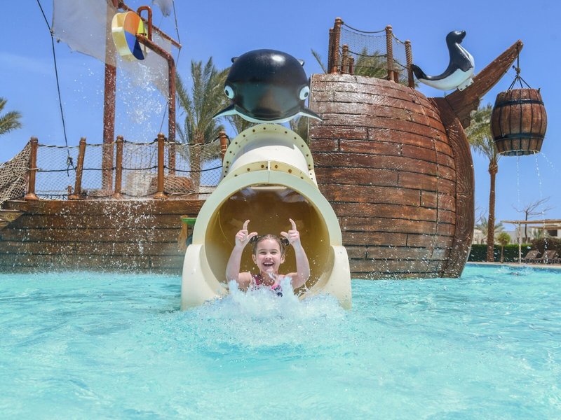 - Aquapark Makadi Water World: zdarma, vonkajší, sladká voda, počet tobogánov: 50, ležadlá: zadarmo, slnečníky