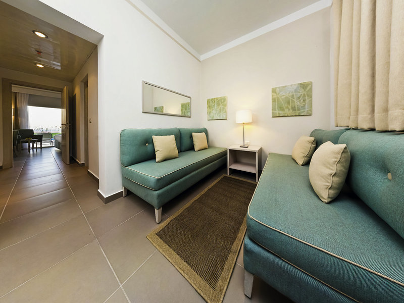 - Family room (FZZ1), Familienzimmer, Gartenseite, Gartenblick, ca. 43 - 43 m², Gesamtanzahl der Räume in diesem Zimmertyp: 2, Aufteilung wie folgt: Wohnzimmer, 1 Schlafzimmer, 1 Double Bed (180x200cm), 2 Schlafsofas (90x180cm), Babybett: ohne Gebühr, Klimaanlage: ohne Gebühr, individuell regelbar, kalt, warm, Heizung: individuell regelbar, Fußboden: Fliesenboden, Safe: ohne Gebühr, Sofa, Kaffee-/Teezubereiter, Wasserkocher, Minibar: gegen Gebühr, Softdrinks: gegen Gebühr, Wasser: ohne Gebühr, alkoholische Getränke: gegen Gebühr, Snacks: gegen Gebühr, Minibarauffüllung: täglich, Telefon, Internet: WLAN/WiFi: ohne Gebühr, Fernseher: im Schlafzimmer, deutsches Programm, Sat-TV, Roomservice: gegen Gebühr, Reinigungsservice: ohne Gebühr, Dusche, WC, Föhn, Kosmetikspiegel, Balkon oder Terrasse: mit Sitzgelegenheit