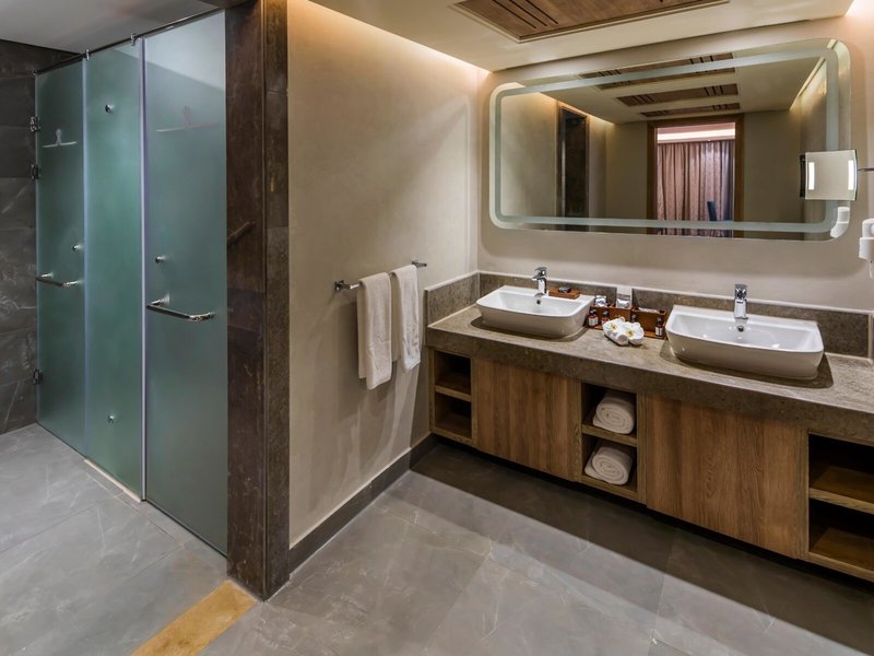 - Garden View Suite (JSX1), Nichtraucherzimmer, Gartenseite, Gartenblick, ca. 53 - 73 m², Gesamtanzahl der Räume in diesem Zimmertyp: 1, Aufteilung wie folgt: kombiniertes Wohn-/Schlafzimmer, 1 Schlafzimmer, Klimaanlage: individuell regelbar, kalt, warm, Fußboden: Fliesenboden, Teppichboden, Safe: ohne Gebühr, Sofa, Kühlschrank, Kaffee-/Teezubereiter, Minibar: ohne Gebühr, bei All Inclusive inklusive, Softdrinks: ohne Gebühr, bei All Inclusive inklusive, Wasser: ohne Gebühr, bei All Inclusive inklusive, alkoholische Getränke: ohne Gebühr, bei All Inclusive inklusive, Snacks: ohne Gebühr, bei All Inclusive inklusive, Minibarauffüllung: täglich, Telefon, Internet: WLAN/WiFi: ohne Gebühr, Fernseher: Flatscreen, Sat-TV, Roomservice: gegen Gebühr, Reinigungsservice, Dusche, WC, Bademantel, Slipper, Föhn, Kosmetikspiegel, Balkon oder Terrasse: mit Sitzgelegenheit