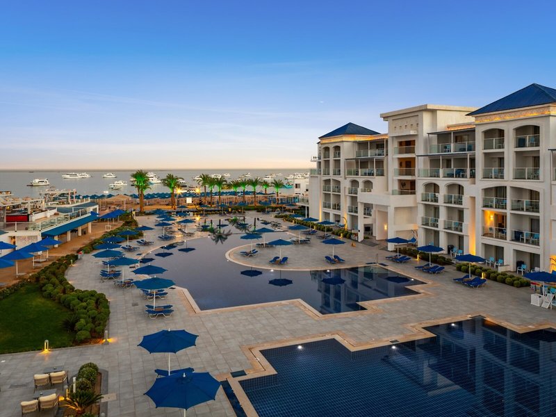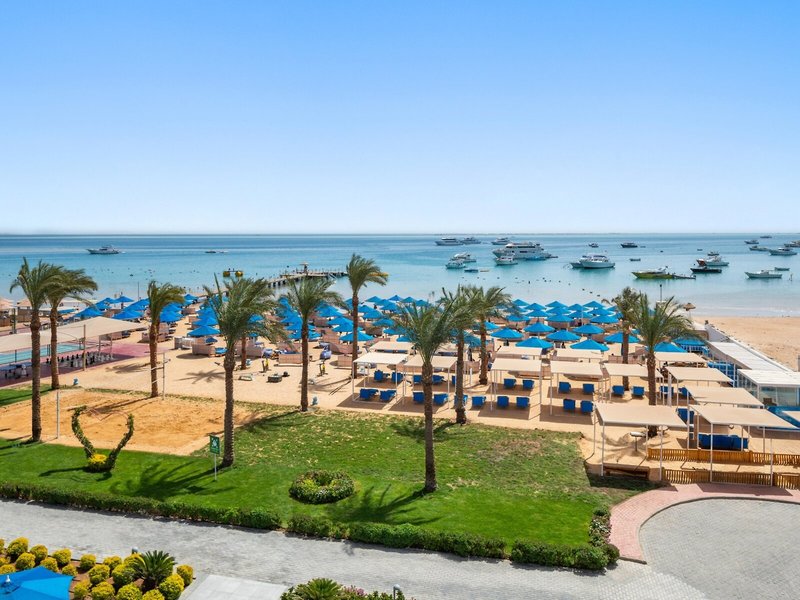 Poloha a okolie Hotelový komplex sa nachádza priamo na krásnej, mierne sa zvažujúcej pláži. Centrum Hurghady je vzdialené len asi 10 km. Na letisko je to asi 10 minút jazdy.