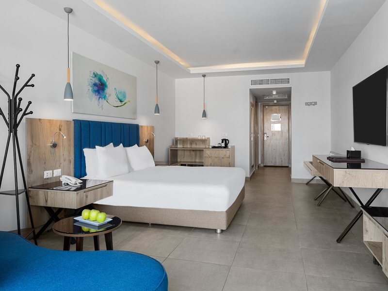 - Deluxe Side Sea View (DZX4), Doppelzimmer, Nichtraucherzimmer, Mindestalter im Zimmer: 16 Jahre, im Hauptgebäude, Meerseite, seitlicher Meerblick, ca. 42 m², letzte Komplettrenovierung 2022, letzte Teilrenovierung 2022, Gesamtanzahl der Räume in diesem Zimmertyp: 1, Aufteilung wie folgt: 1 Schlafzimmer, 2 Einzelbetten (120x200cm), Klimaanlage: ohne Gebühr, saisonabhängig, individuell regelbar, kalt, warm, Fußboden: Fliesenboden, Safe: ohne Gebühr, Sofa, Kaffee-/Teezubereiter, Minibar: ohne Gebühr, Wasser: ohne Gebühr, Telefon, Internet: WLAN/WiFi: ohne Gebühr, Fernseher: Flatscreen, deutsches Programm, Sat-TV, Roomservice: täglich, gegen Gebühr, Reinigungsservice: täglich, ohne Gebühr, Dusche, WC, Föhn, Kosmetikspiegel, Balkon oder Terrasse: mit Sitzgelegenheit