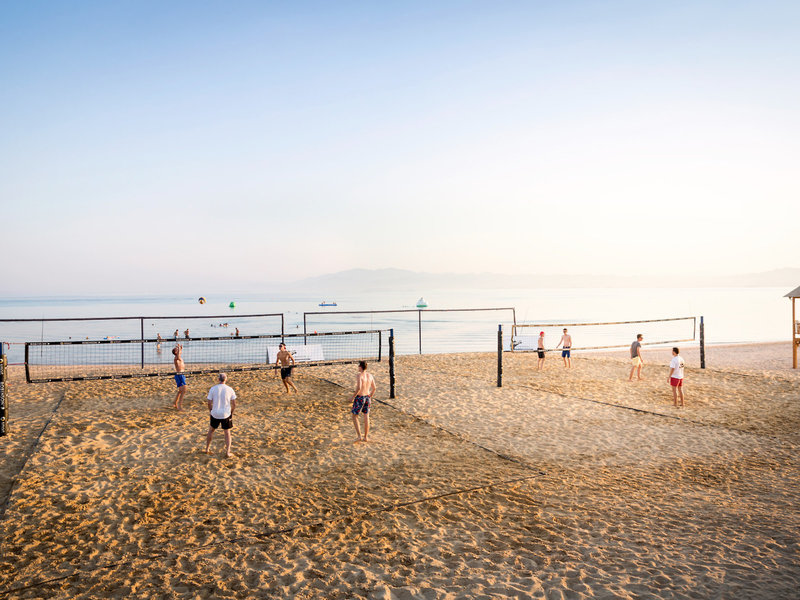 - Strand: Sand, flach abfallend, Liegen, Sonnenschirme