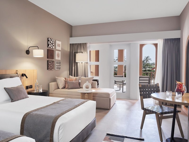 - Junior Suite (King or Twin) (JSX1), Juniorsuite, Nichtraucherzimmer, ca. 57 m², letzte Komplettrenovierung 2022, Gesamtanzahl der Räume in diesem Zimmertyp: 1, Aufteilung wie folgt: kombiniertes Wohn-/Schlafzimmer, Klimaanlage: ohne Gebühr, kalt, warm, Fußboden: Fliesenboden, Safe: ohne Gebühr, Sofa, Schreibtisch, Kaffee-/Teezubereiter, Wasserkocher, Minibar: gegen Gebühr, bei All Inclusive inklusive, Telefon, Internet: WLAN/WiFi: ohne Gebühr, Fernseher: Flatscreen, im Schlafzimmer, Roomservice: täglich, gegen Gebühr, Reinigungsservice: täglich, ohne Gebühr, Dusche, Regendusche, WC, Bademantel: ohne Gebühr, Slipper: ohne Gebühr, Föhn, Kosmetikspiegel, Balkon oder Terrasse