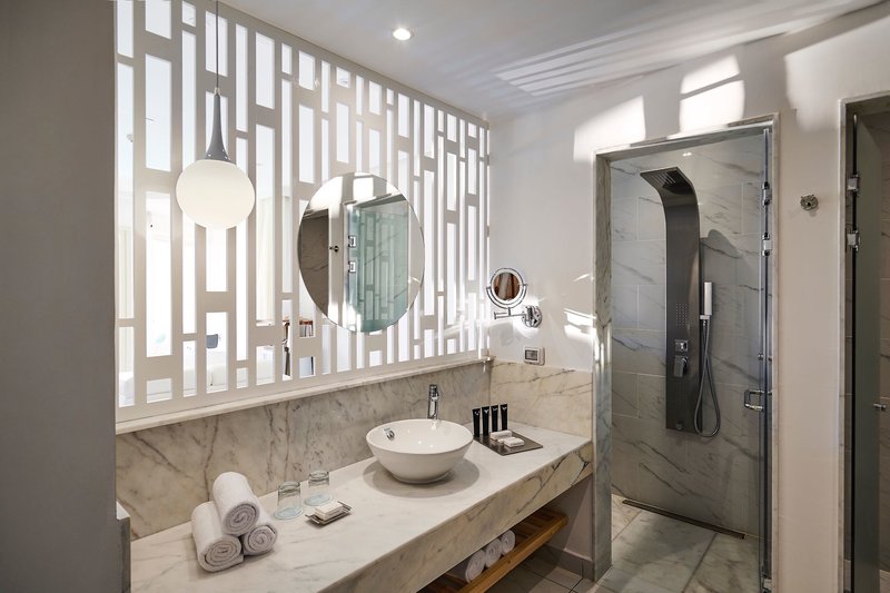 Swim Up Suite: Die Swim Up Suiten (2SU) verfügen bei ähnlicher Ausstattung wie die Jacuzzi Suiten über einen direkten Zugang zum Terrassenpool (im Winter ist dieser beheizbar) und sind mit einer Größe von ca. 50 m² (inkl. 4 m² Terrasse) geräumiger.