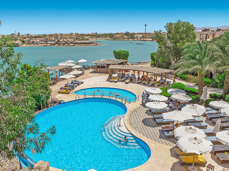 Lage: Idyllisch an den Lagunen von El Gouna gelegen. Der Lagunenstrand befindet sich direkt am Hotel, zum Flughafen nach Hurghada sind es ca. 30 km.